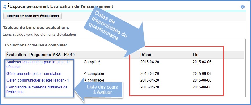 La période de disponibilité des questionnaires pour la plupart des cours s’étendra du 20 novembre 8 h au 3 décembre 23 h 55.